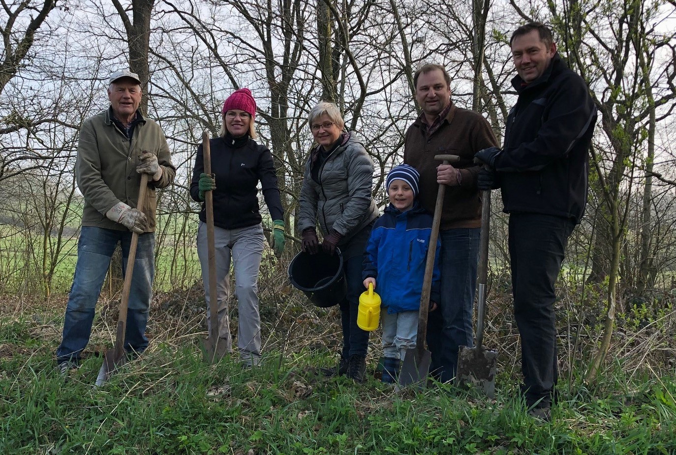 Ortsverbandsmitglieder aus St. Michaelisdonn pflanzen Büsche und sähen Blühstreifen