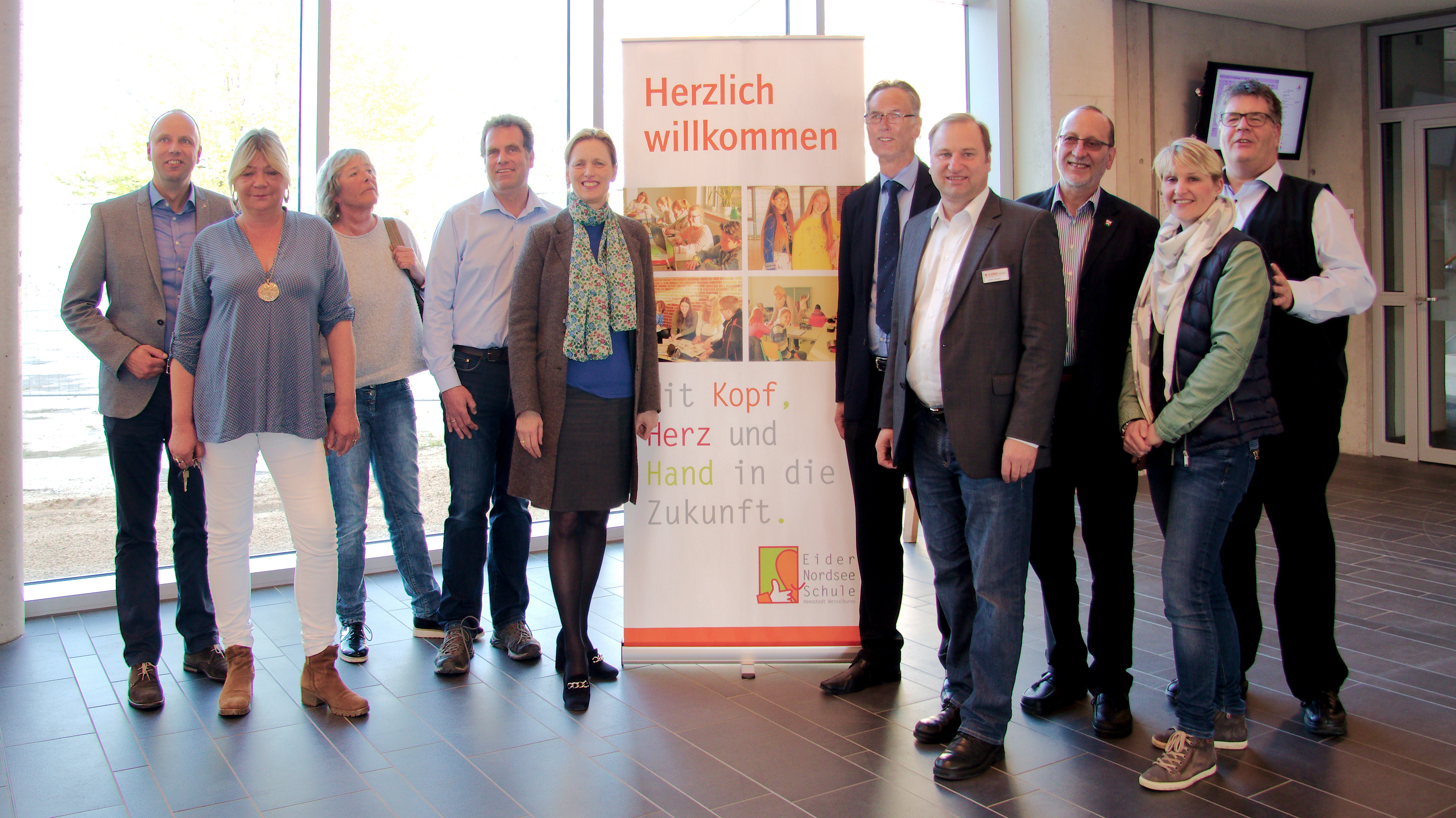 Ein Termin in Wesselburen machte es möglich: Bildungsministerin Karin Prien nutzte die Gelegenheit und stattete der Eider-Nordsee-Schule, zusammen mit den Landtagsabgeordneten Volker Nielsen und Andreas Hein, einen kurzfristig angesetzten Blitzbesuch ab. Trotz des engen Zeitfensters konnte sie sich einen Überblick über den Neubau, die moderne Ausstattung, das Digitale Lernen und das Haus der Bildung verschaffen. In der auf den Rundgang folgenden Diskussion gab es einen regen Austausch zu verschiedenen aktuellen Themen rund um das Bildungswesen.