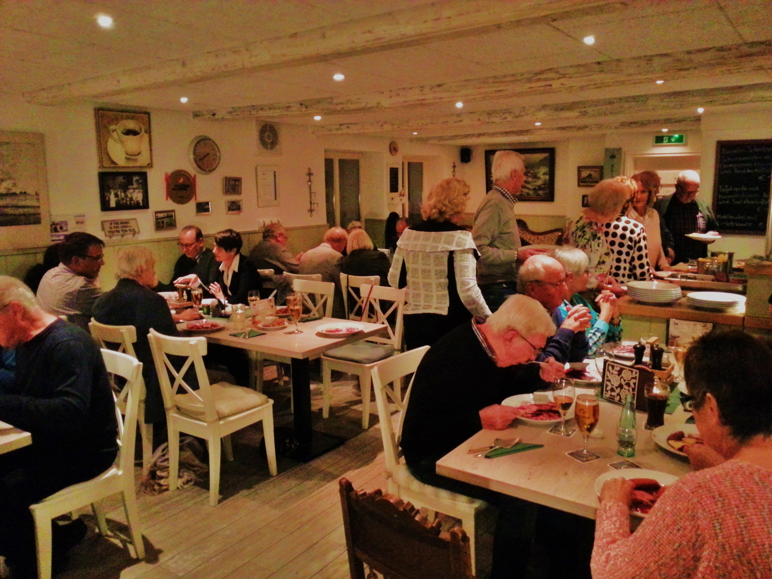 Viele Christdemokraten aus Wesselburen waren der Einladung in die Gaststätte Ulmenklause in Wesselburen gefolgt. Auch aus dem Nachbarort Büsum waren wie jedes Jahr wieder zahlreiche Mitglieder eingeladen worden und freuten sich auf dieses leckere Mehlbeutelessen. Der Dithmarscher Mehlbeutel ist ein salziger, mit etwas Zitronenschale gewürzter und mit Eiern gelockerter Mehlkloß, bei dem der Teig in ein Tuch eingeschlagen in einem Topf gart. Es konnte gewählt werden zwischen witt oder bunt, also traditioneller Zubereitung weiß oder bunt mit Rosinen. Dazu gab es heiße Kirschen, Senf, Senfsoße, Kartoffeln und Scheiben von Schweinebackenfleisch, Mettwürste und Kasseler satt.