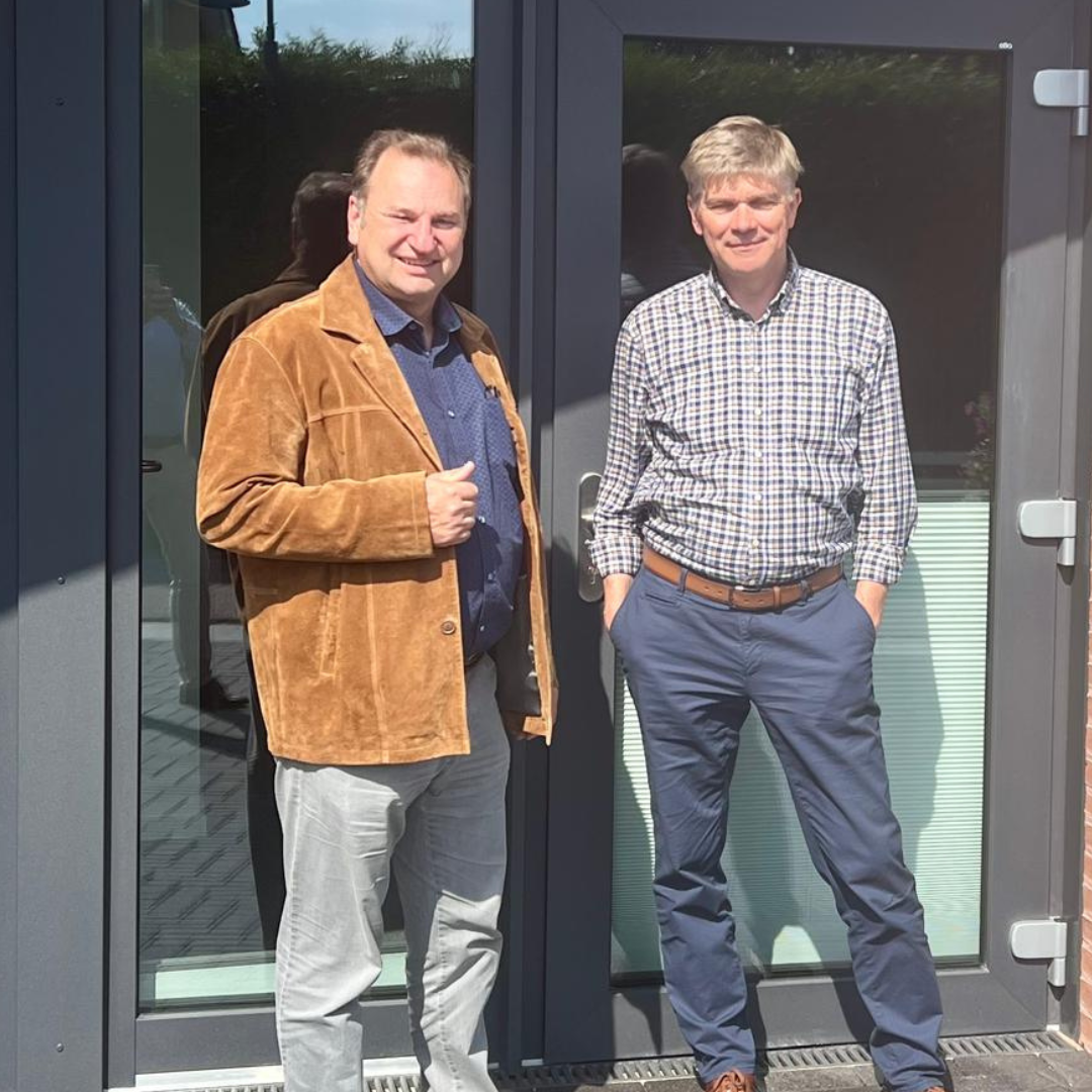 Im Rahmen seiner Wahlkreistermine besuchte CDU Landtagsabgeordneter Volker Nielsen die Gemeinde Norddeich. Bürgermeister Ulf Jacobsen stellt das im Mai eingeweiht Dörpshus mit seinen multifunktionalen Nutzungsmöglichkeiten vor. Der benachbarte Fußballplatz sowie die Nebenflächen mit Spielgeräten für Kinder und eine Parkplatzanlage runden das neue Dorfzentrum ab.