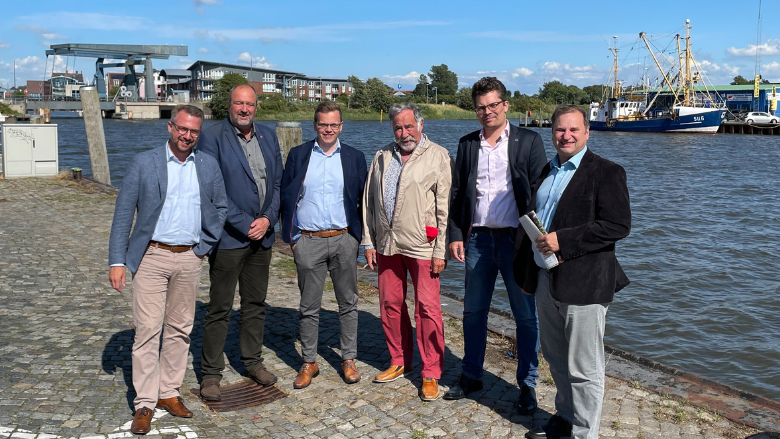 Um über größere Investitionen in die weitläufigen Hafenanlagen zu sprechen lud die IHK zu Flensburg die Küstenabgeordneten Manfred Uekermann, Michel Deckmann und Volker Nielsen (alle CDU) zum Austausch ein. Dr. Jerome Stuck, IHK Referent für Infrastruktur, Mobilität und maritime Wirtschaft, Geschäftsbereich Standortpolitik, sowie Tom Brodersen, Geschäftsführer des Schiffsmaklers Wilhelm Schmid wiesen auf den hohen Finanzbedarf für die Erneuerung von Kaimauern in Husum und dem Ausbau des Hafenbecken IV in Büsum hin.
