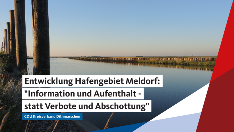 CDU Kreisvorstand spricht sich für den Bau von ca. 60 Ferienhäuser und dem Nationalparkhaus im Bereich des neuen Meldorfer Hafens im 5.000 ha großen Speicherkoog aus. Ein Beispiel für sanften Tourismus in SH mit nur wenigen Quartieren in einem sehr flächengroßen Koog, der auch landwirtschaftliche Acker- und Grünlandflächen umfasst und wichtige Funktionen der Binnenentwässerung erfüllt. Das Hafengebiet ist umgeben vom Nationalpark Wattenmeer, dem Naturschutzgebiet Kronenloch (535 ha Eigentum Land SH als „innen liegendes Salzwassenbiotop) und einem europäischen Vogelschutz- und FFH Gebiet. Das Hafengebiet selbst liegt   n i c h t   in Schutzgebieten. Deshalb konnten hier auch
