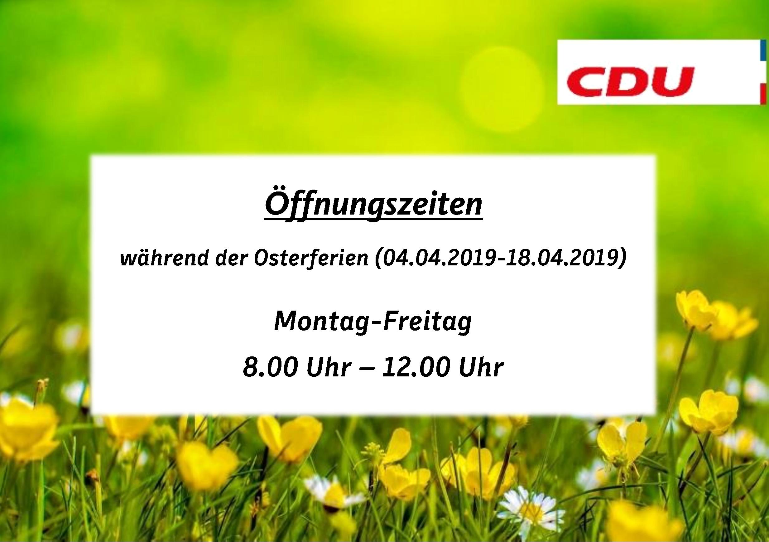 Geänderte Öffnungszeiten während der Osterferien - CDU Kreisgeschäftsstelle