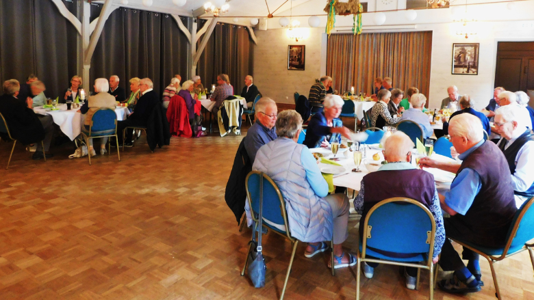 Dann hieß es eine Stärkung zu sich zu nehmen. Schmackhafte Kohlrouladen satt mit gestovtem Weißkohl, Rotkohl und leckerer Soße nebst Salzkartoffeln. Zum Abschluss trug Mitglied Inge Sommer ein langes humoristisches Gedicht „DE DAMPER KUMMT“ vor, welches anlässlich der Goldenen Hochzeit der Eltern entstanden war.