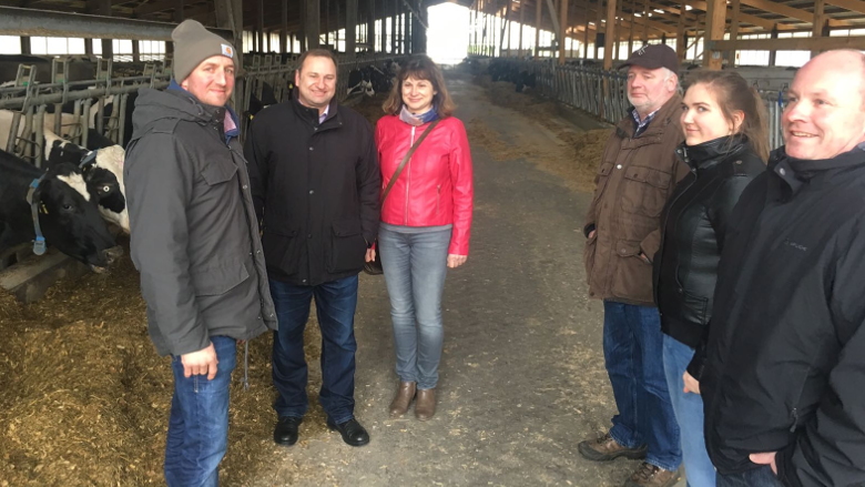 Beim Betriebsrundgang überzeugten der 2010 gebaute Kuhstall und das daneben stehende Melkgebäude. Frische Luft, Helligkeit, Bürstenanlage und die Möglichkeit ständiger Bewegung innerhalb und außerhalb des Gebäudes sichern eine artgerechte Haltung von Nutzrindern. „Wer sich einmal an die Ställe der Vergangenheit erinnert“, so Kreistagsabgeordneter Thies Kühl, selbst aktiver Landwirt, „wird wissen wie es war: Über den Winter waren die Kühe sechs Monate angebunden. Die alten Ställe waren niedrig, kaum belüftet, teils dunkel und feucht. Zudem kalbten die Kühe an der Kette.“ Henning Timm verwies auf seine Abkalbungsboxen mit Stroheinstreu, in der die Kühe ihr Kalb zur Welt bringen können. Der Herdenmanager hat in diesem Bereich das Sagen und trifft eigenständig Entscheidungen. Im Melkgebäude stehen stressfreies Melken für die Tiere, Sauberkeit und Arbeitsschutz für die Mitarbeiter an vorderster Stelle. Mussten sich die Melker früher mit dem Melkgeschirr in der Hand unter jedes Tier bücken, kann die Melkarbeit heute im Stehen und mit aufgehängten Absauganlagen ausgeführt werden. Die Kühe laufen danach über den Außenbereich in den Stall zurück, können fressen oder sich hinlegen. Rinder sind Herdentiere und fühlen sich unabhängig von der Größe der Herde wohl, wenn Gebäude und Außenbereiche ausreichende Bewegungsfreiheit ermöglichen. „Wer sich einmal die Abläufe in der Milchviehhaltung auf dem Hof Timm in Ruhe ansieht, wird feststellen, dass der immer wieder formulierte Vorwurf der Massentierhaltung in Offenlaufställen völliger Quatsch ist “, so Volker Nielsen in seiner politischen Bewertung abschließend.