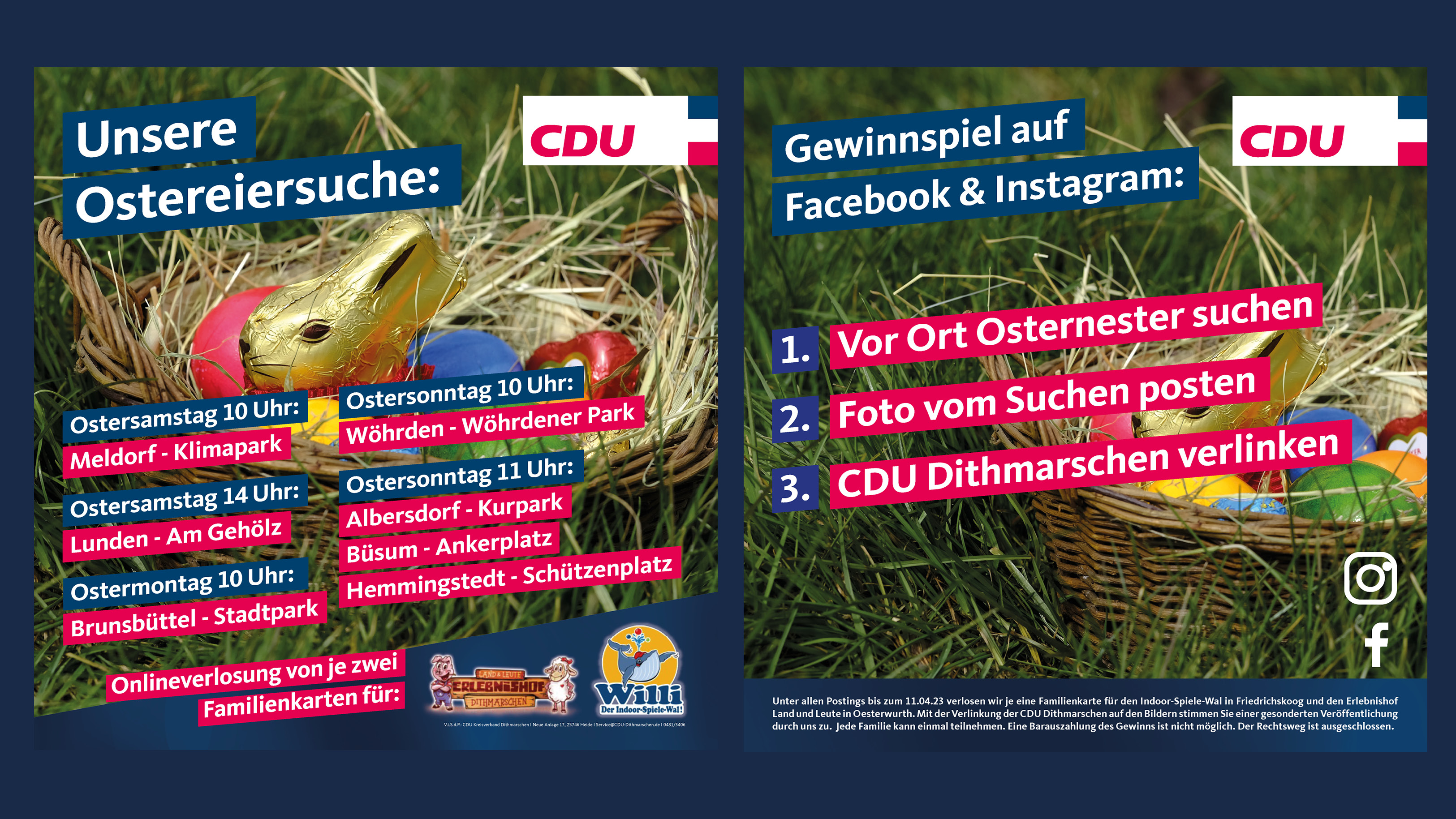 Unter allen Postings bis zum 11.04.23 verlosen wir je eine Familienkarte für den Indoor-Spiele-Wal in Friedrichskoog und dem Erlebnishof Land & Leute in Oesterwurth.