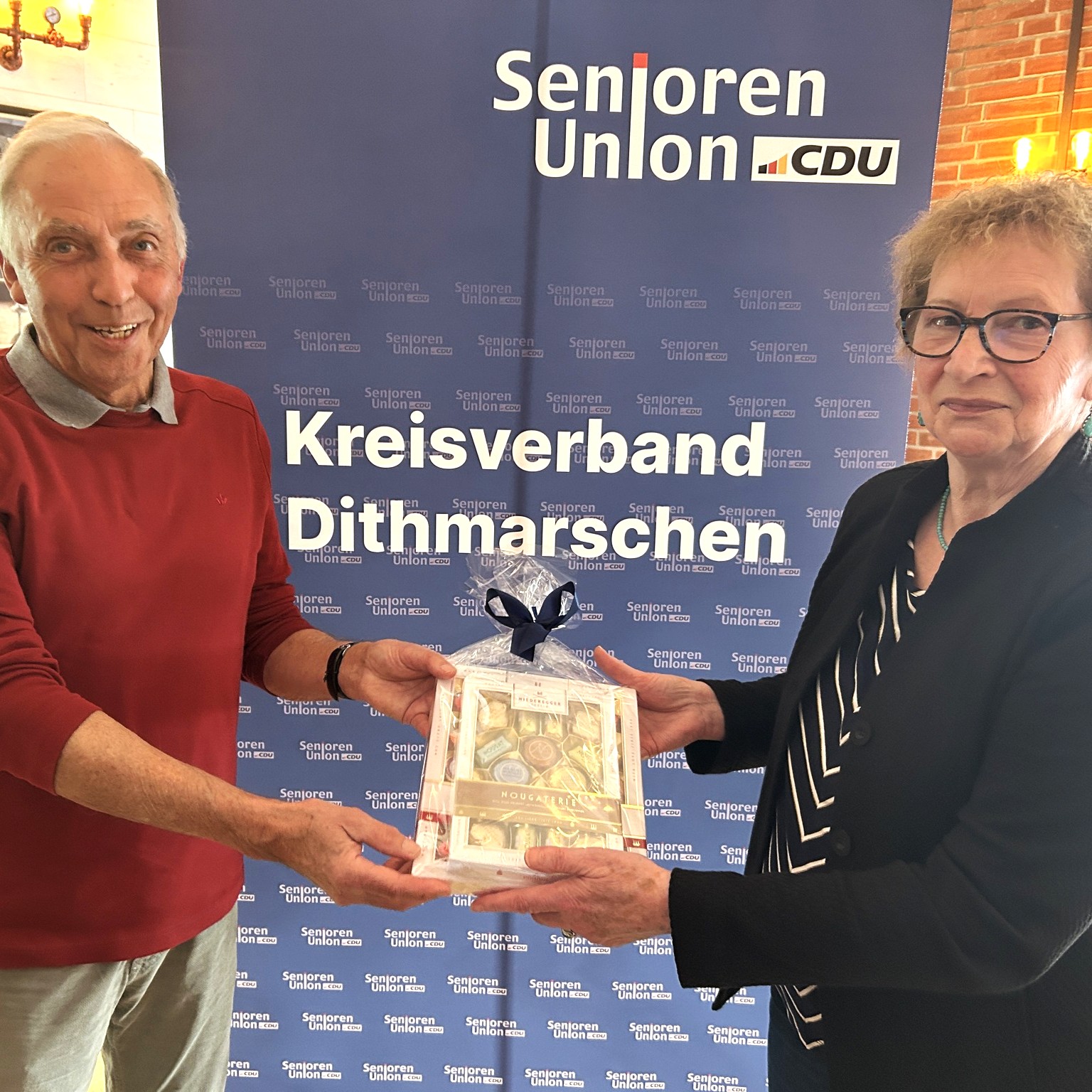 Zum Schluss überreichte Ohlsen Santjer eine süße Leckerei für seinen sehr interessannten Vortrag.
