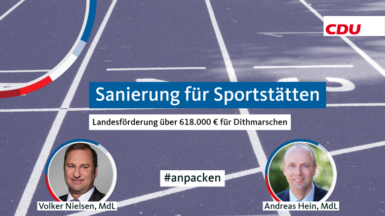 Zahlreiche Sportstätten erhalten vom Land eine teils erhebliche Förderung, wie die beiden Dithmarscher CDU-Landtagsabgeordneten Andreas Hein und Volker Nielsen berichten. Insgesamt fließen nach ihren Angaben mehr als 618.000 Euro nach Dithmarschen. „Das ist gezielte und vor allem sinnvolle Sportförderung, die Schulen und Vereinen zugutekommt“, betonen die Dithmarscher Abgeordneten.