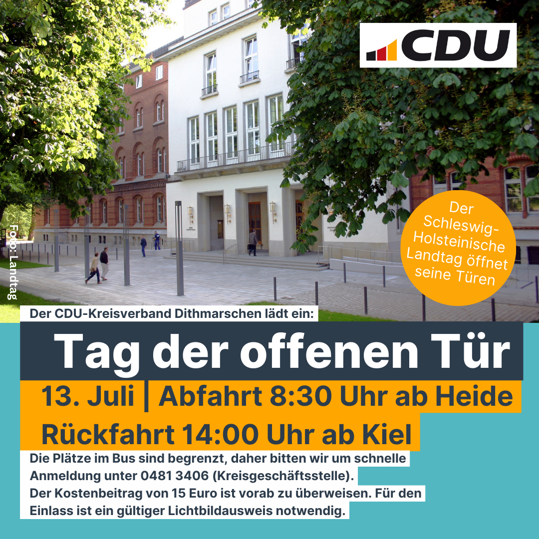 Der CDU-Kreisverband lädt herzlich zur gemeinsamen Fahrt nach Kiel ein.